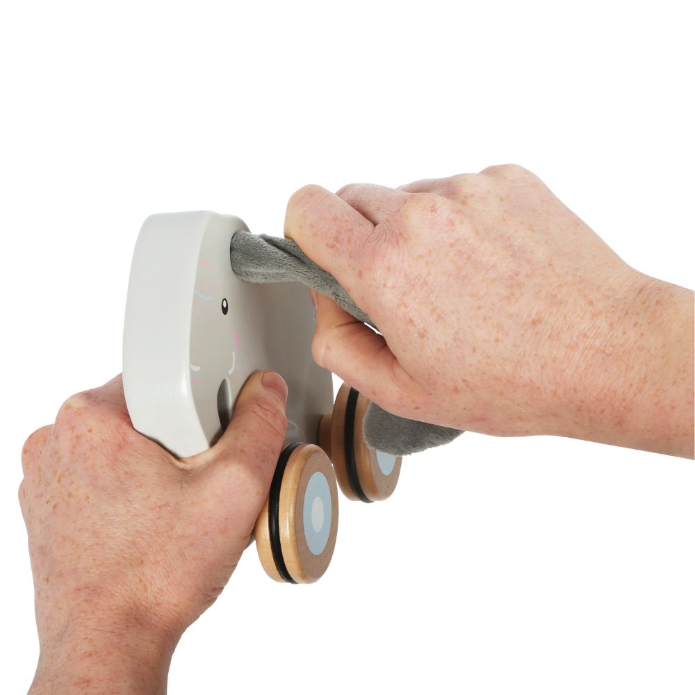Jucărie de tras, Elefant din lemn FSC® cu urechi foșnitoare, Small Foot, 1 an+