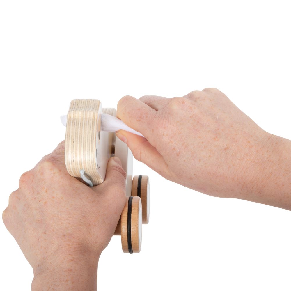 Jucărie de tras, Iepuraș din lemn FSC® cu urechi foșnitoare, Small Foot, 1 an+
