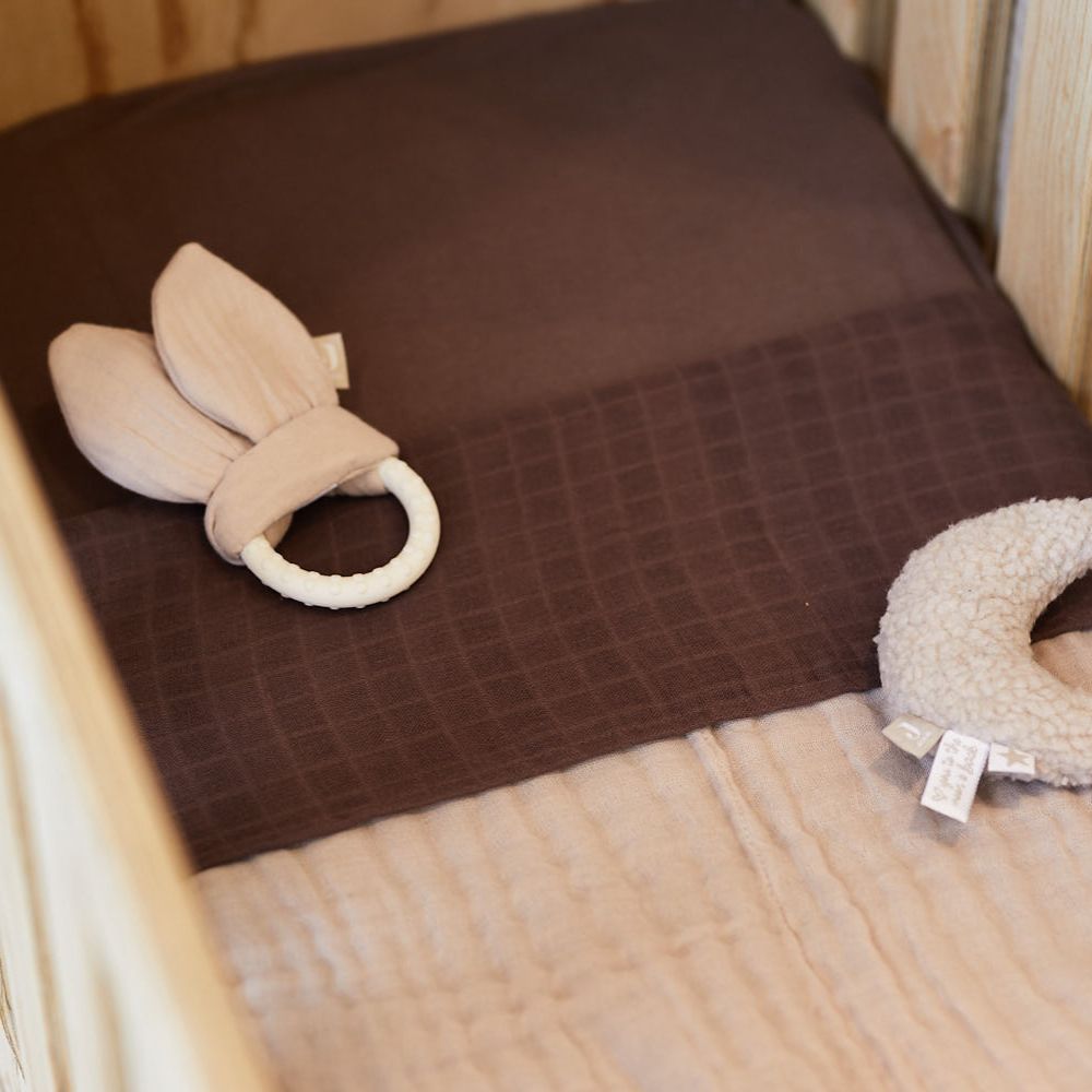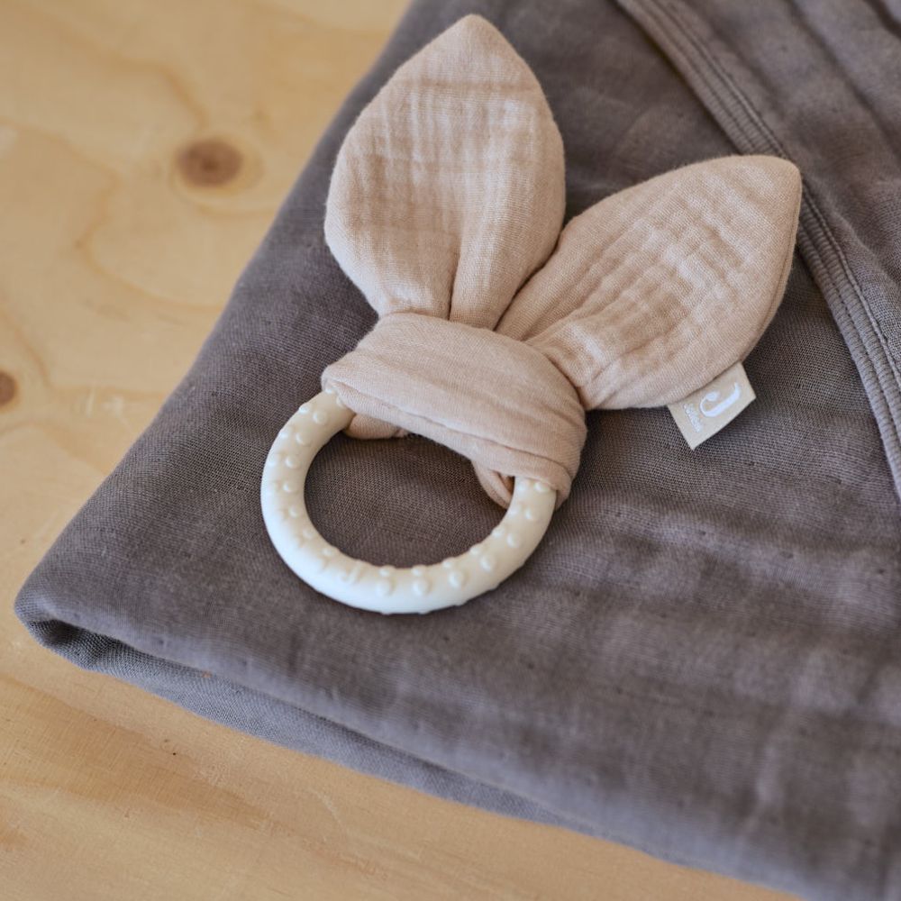 Fabricat din silicon 100% sigur și fără BPA, acest inel gingival este ideal pentru supt, ros și explorare. Urechile din textil foșnesc plăcut, stimulând auzul și curiozitatea celor mici – ceea ce face ca acest accesoriu să fie mai mult decât o simplă jucărie de dentiție.