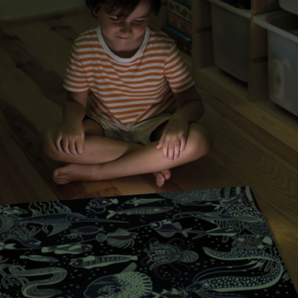 Pentru a activa strălucirea, puzzle-ul trebuie expus la o sursă de lumină timp de cel puțin 30 de minute. Apoi, în întuneric, peștii și alte elemente marine vor lumina, dezvăluind detalii spectaculoase.