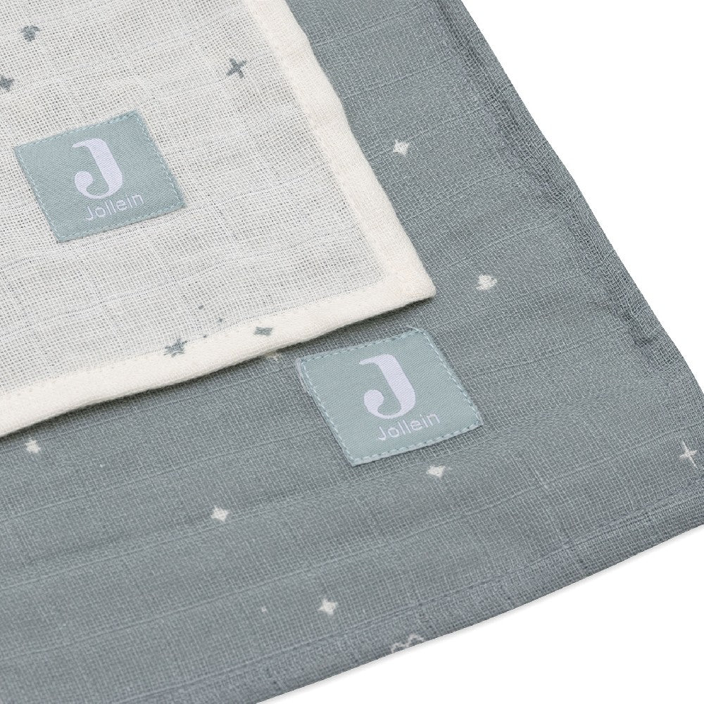Set 2 museline din bumbac, Twinkling , Jollein, Albastru cenușă, 115x115 cm, OEKO-TEX