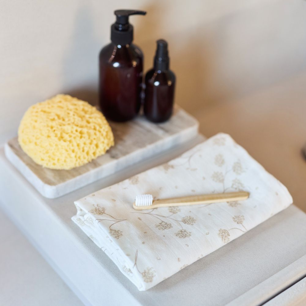Printul delicat Leafy Dreams cu frunze jucăușe adaugă o notă naturală și caldă oricărui moment de îngrijire. Setul conține 3 bucăți, fiind ideal atât acasă, cât și în deplasare – pentru geanta de maternitate, călătorii sau plimbări.