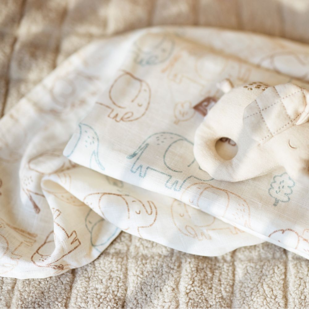 Set 3 museline din bumbac tip batistă, Elephant Tales, Jollein, 31x31 cm, OEKO-TEX