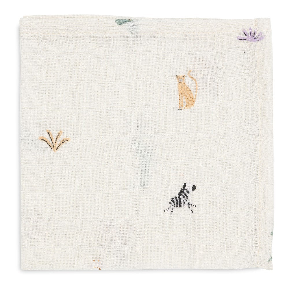 Confecționate din bumbac 100% moale și delicat, aceste batiste oferă confort și siguranță. Designul în nuanțe calde cu imprimeu ce înfățișează diferite specii de animale sălbatice adaugă o notă de veselie în fiecare zi.
