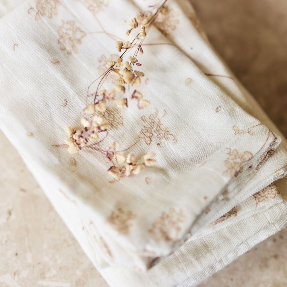 Set 3 museline din bumbac tip batistă, Leafy Dreams, Jollein, 31x31 cm, OEKO-TEX