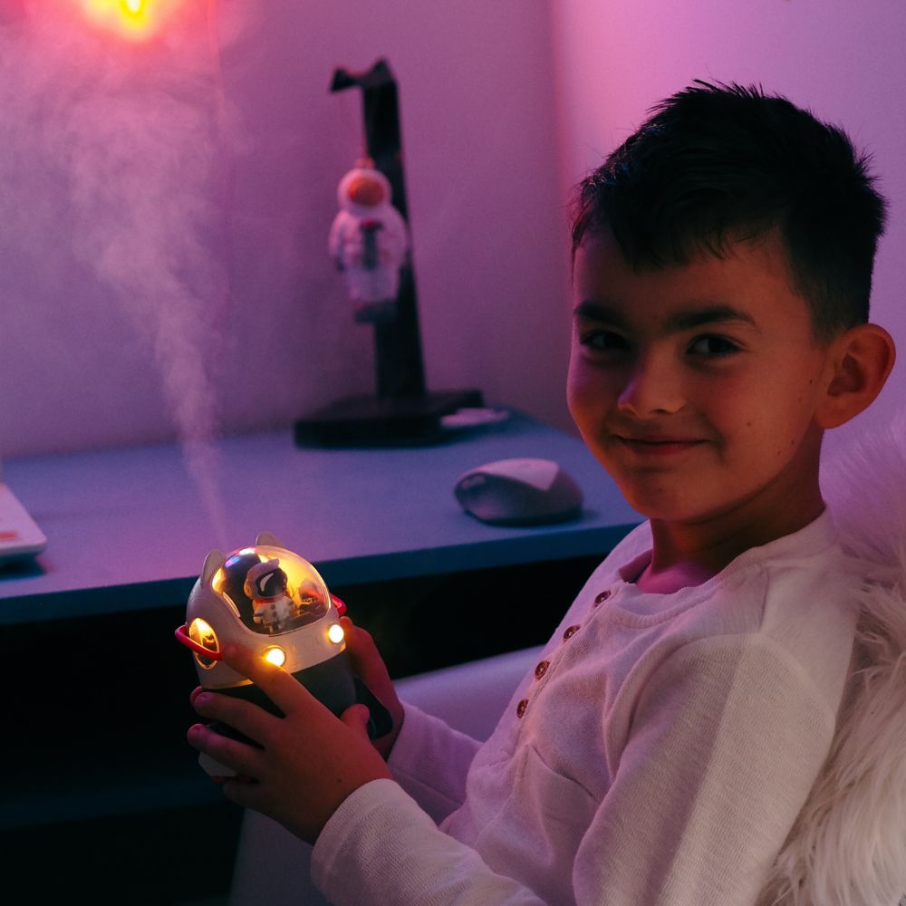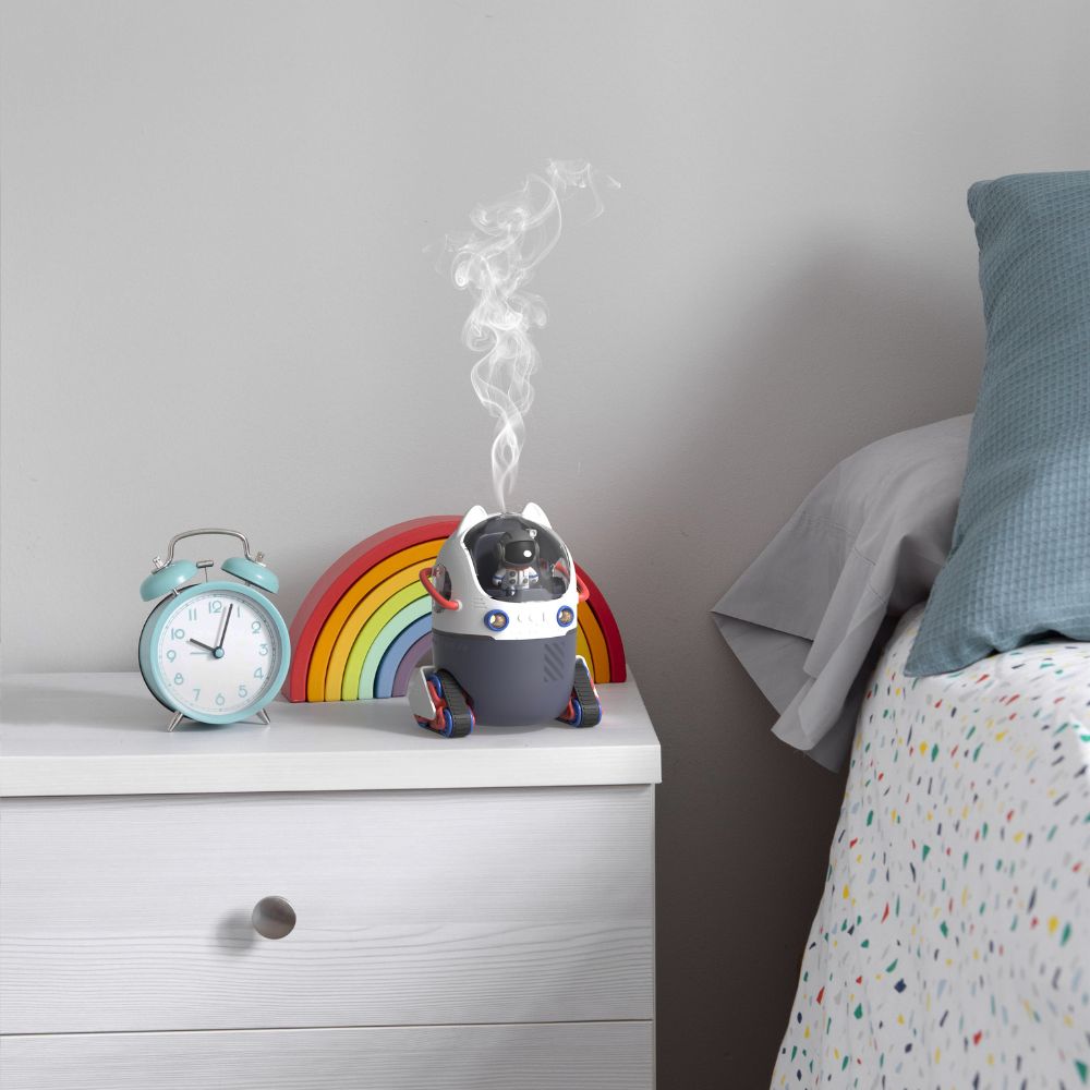 Humybot este mai mult decât un simplu umidificator. Cu forma sa unică de navă spațială și un mic astronaut detașabil în interior, devine rapid jucăria preferată a celor mici și un element decorativ perfect pentru orice cameră de copil.